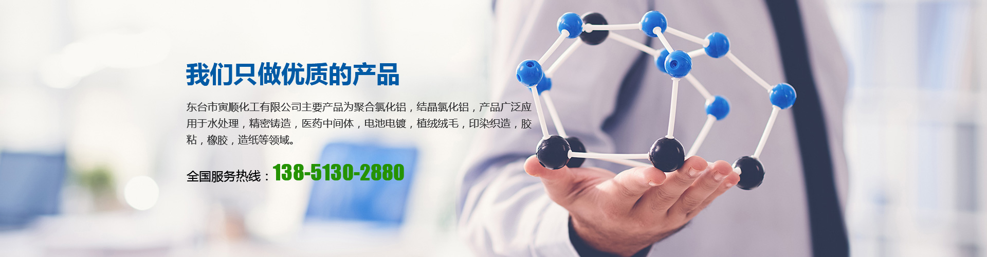 東臺(tái)市寅順化工有限公司主要產(chǎn)品為聚合氯化鋁,結(jié)晶氯化鋁,產(chǎn)品廣泛應(yīng)用于水處理,精密鑄造,醫(yī)藥中間體,電池電鍍,植絨絨毛,印染織造,膠粘,橡膠,造紙等領(lǐng)域。